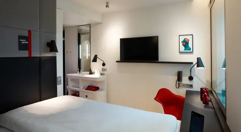Junior, single, double, presidential suite? Nope! At all citizenM hotels, you'll find one type of room – cosy and cleverly designed for 2 adults to share.